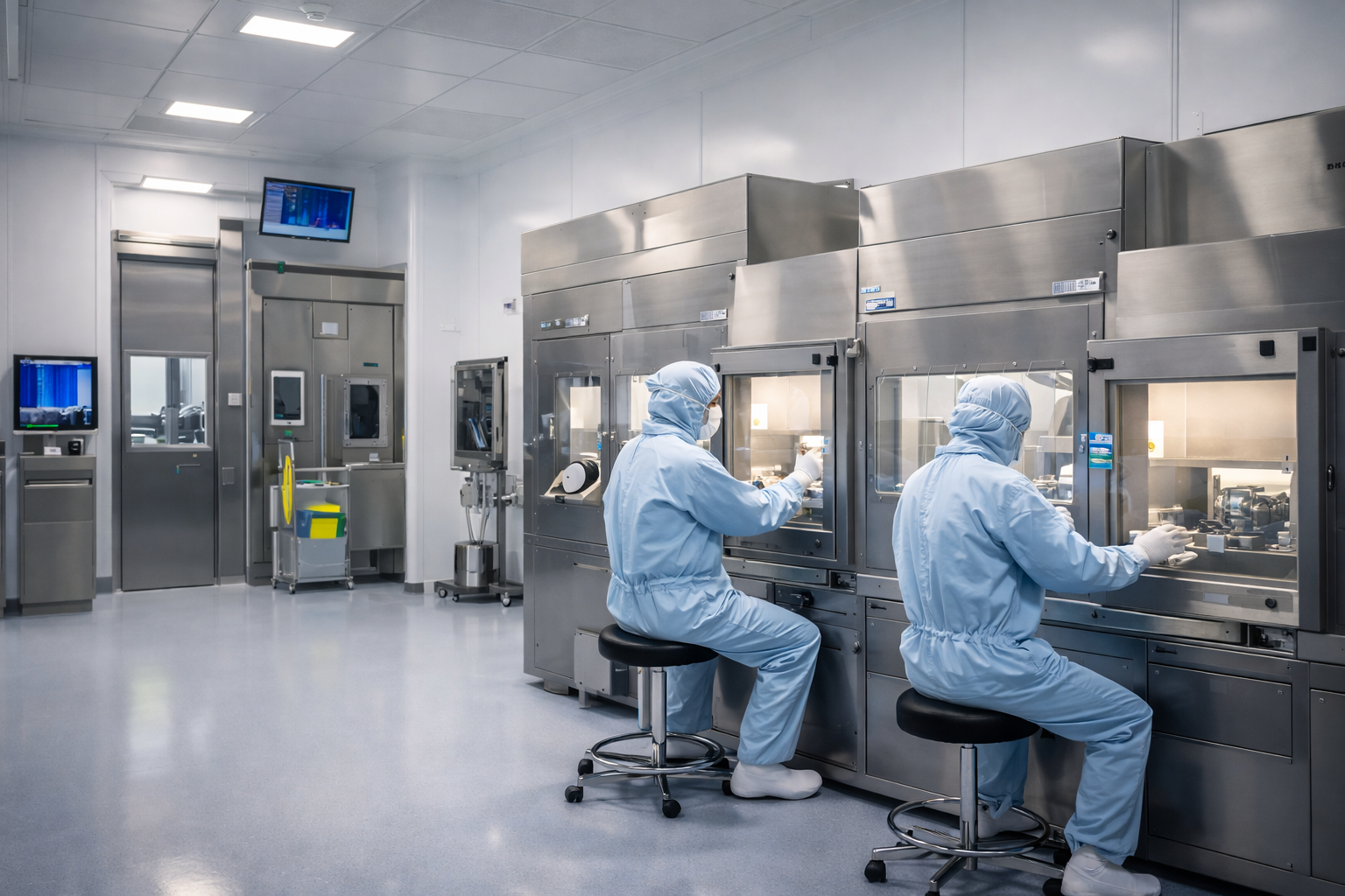 Design and construction of compliant pharmaceutical production environments with cleanroom systems and controlled processes.